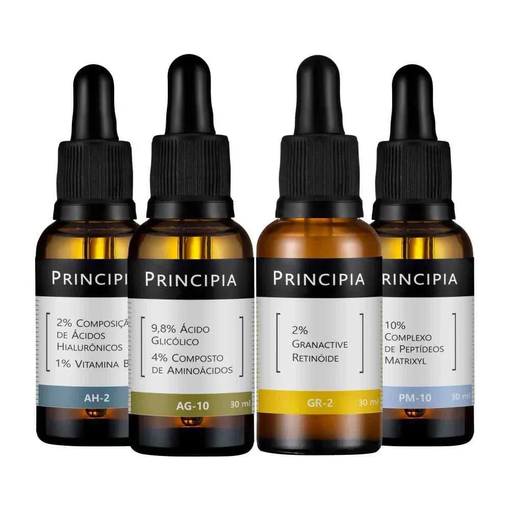Kit com 4 fórmulas: Granactive Retinóide, Ácido Glicólico + Aminoácidos, Peptídeos Matrixyl e Ácidos Hialurônicos, em caixa de presente.